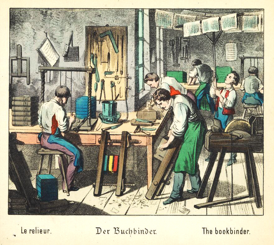 Das Buchbinderhandwerk war bis zum Ende des 15. Jahrhunderts ein freies Handwerk. Das heißt, dass jeder, der meinte ein Buch binden zu können, das auch tun konnte.